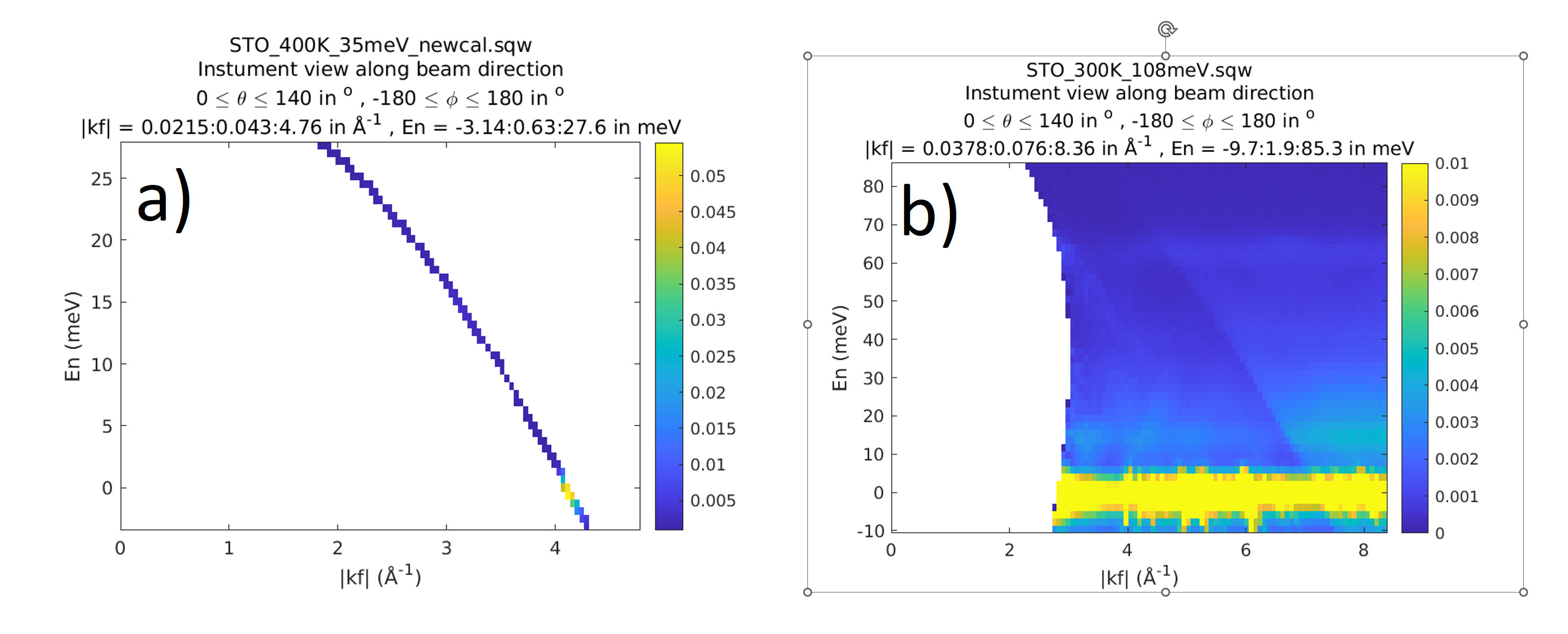Where sqw_source is an source sqw object with pixels, and two other arguments define binning in two directions. theta – the angle between beam and detector directions and En are the energy transfer values.